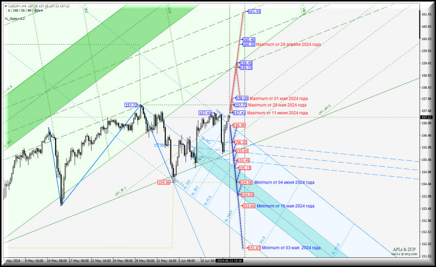 USD/JPY - h4 - обзор вариантов развития движения данного валютного инструмента с 14 июня 2024 г.