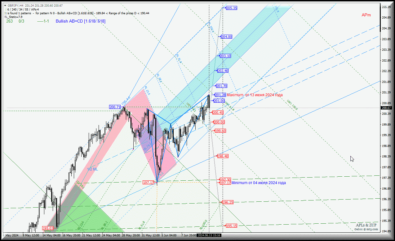 Great Britain Pound vs Japanese Yen - максимум 201.28 от 13 июня 2024 года обновлен не будет? Комплексный анализ (с анимационной разметкой) APLs & ZUP с 14 июня 2024 года