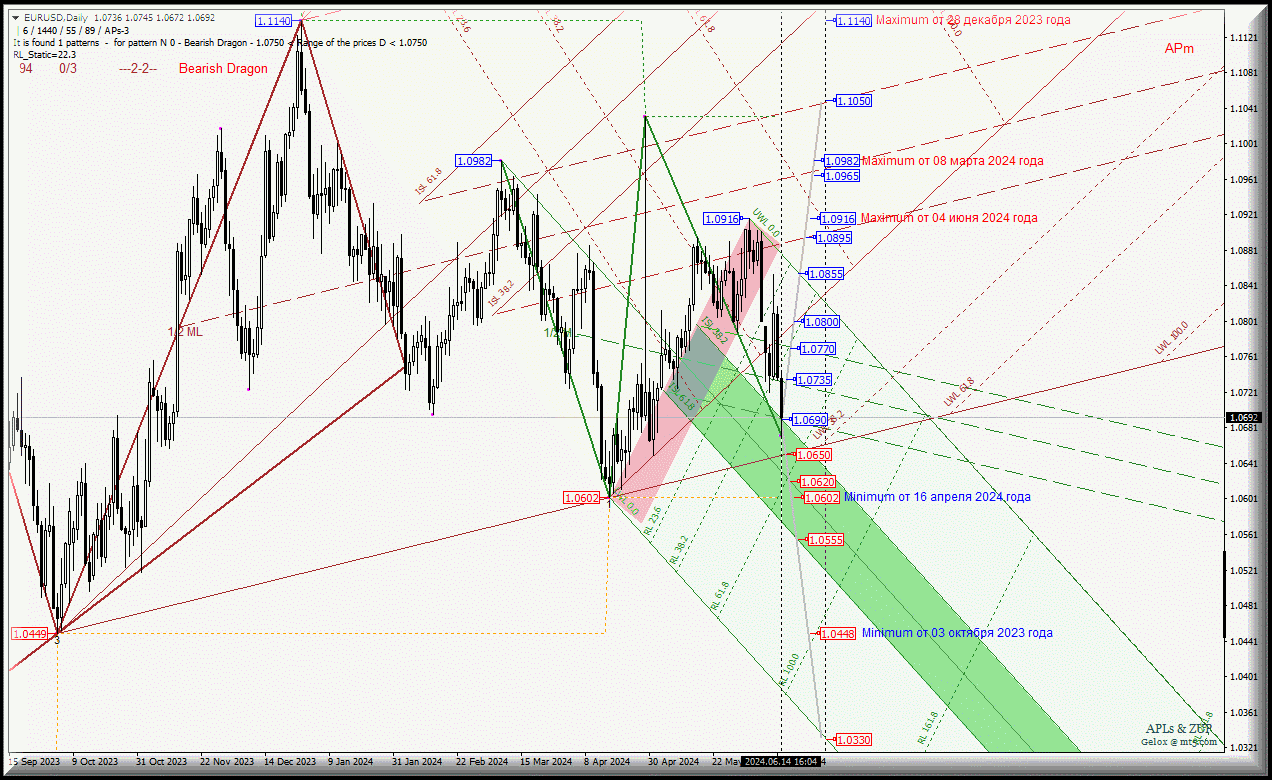 Euro vs US Dollar - вторая половина июня - падаем дальше? Комплексный анализ ( с анимационной разметкой) - APLs & ZUP - с 17 июня 2024 года