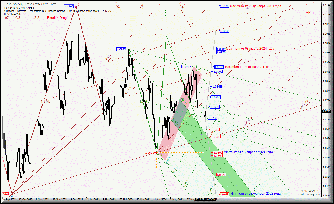 EUR/USD - Daily - обзор вариантов движения - c 20 июня 2024 года.