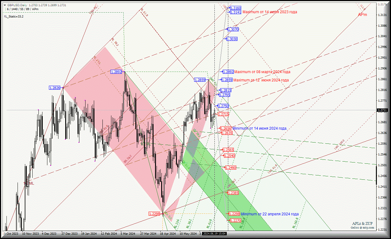 Движение валюты Его Величества - GBP/USD с 20 июня 2024 года продолжится в канале 1/2 Median Line (1.2635 - 1.2715 - 1.2795) вил старшего операционного масштаба Minor-Daily в зависимости от отработки и направления пробоя диапазона: