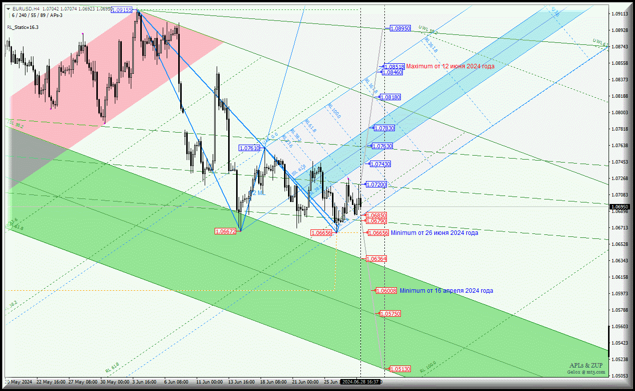 Euro vs US Dollar — продолжим дешеветь в первой неделе июля? Комплексный анализ (с анимационной разметкой) — APLs & ZUP — с 01 июля 2024 года