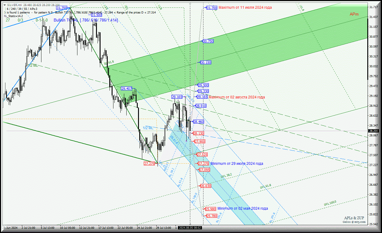 Spot Silver - вариант возобновления роста стоимости? Комплексный анализ (с анимационной разметкой) - вилы Эндрюса APLs & ZUP - с 05 августа 2024