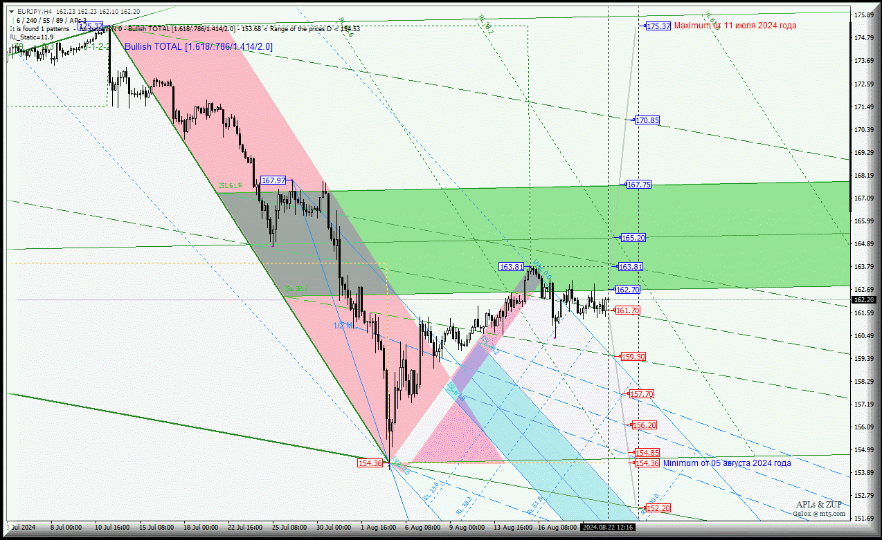 Euro vs Japanese Yen - h4 - основные торговые уровни. Комплексный анализ (с анимационной разметкой) APLs & ZUP с 23 августа 2024