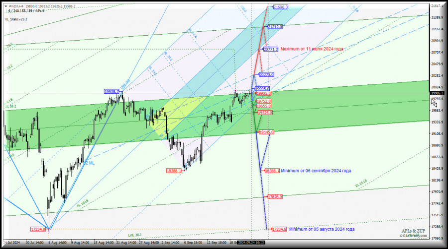 #NDX - NASDAQ-100 - цель - максимум 20771.3 от 11 июля 2024 г.? Комплексный анализ (с анимационной разметкой) - вилы Эндрюса APLs & ZUP - с 25 сентября 2024